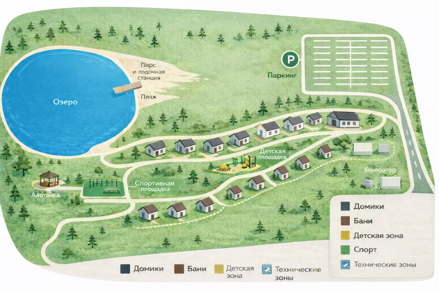 баня, беседки, зоны отдыха, парковка